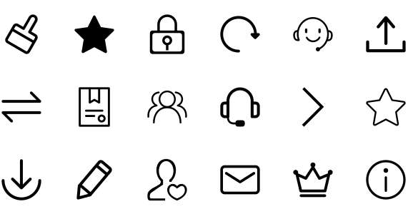 Available in SVG or EPS vector, PNG, PSD files and monocolor Icons Fonts packs.